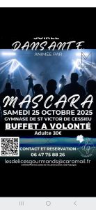 Soirée dansante avec le groupe MASCARA, buffet à volonté préparé par” les Délices Gourmands”