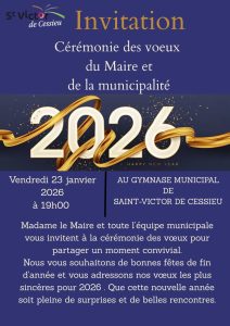 VOEUX de la Municipalité : Vendredi 23 Janvier 2026 à 19h.