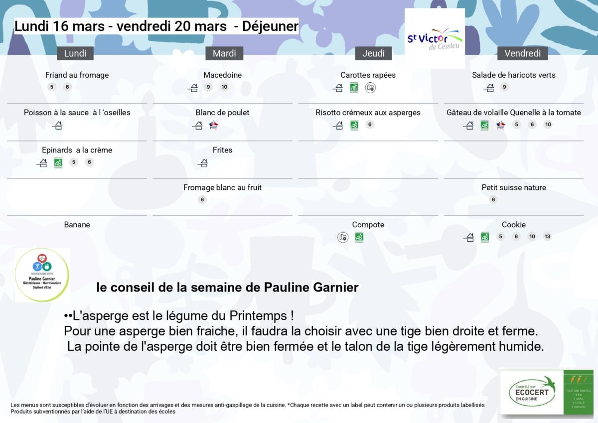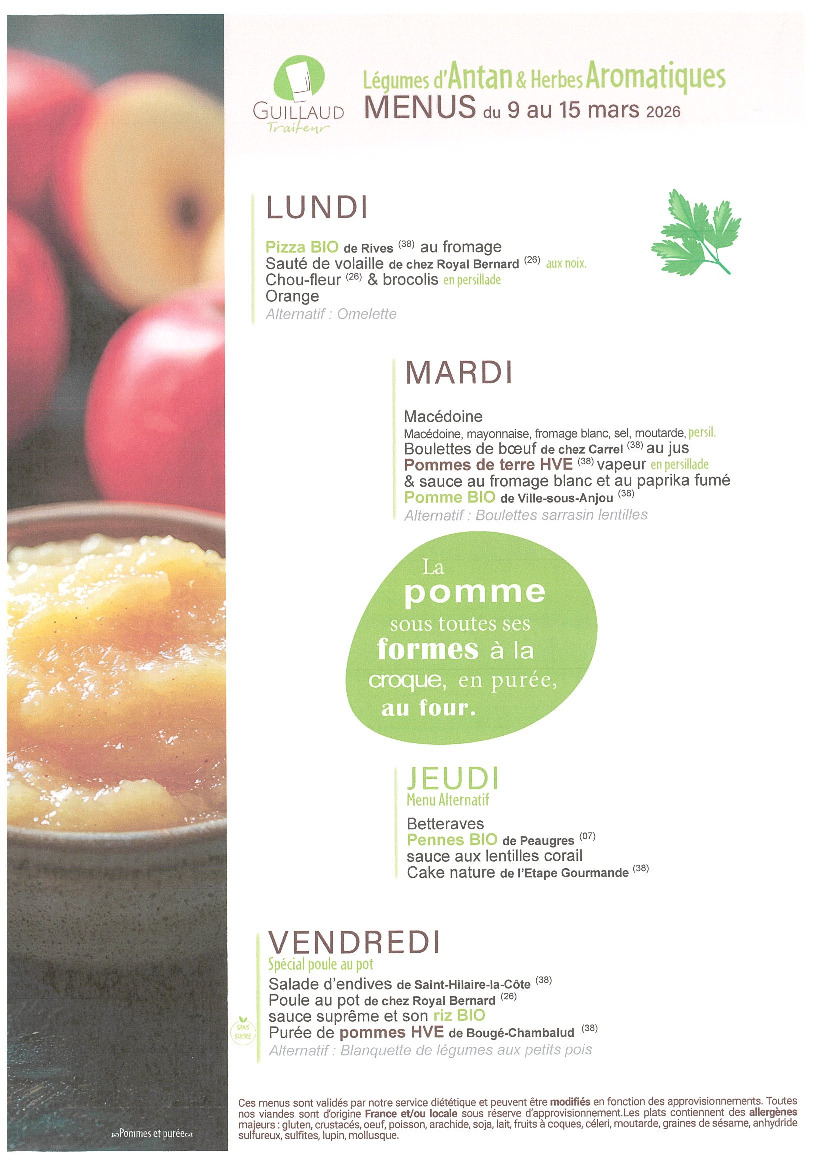 Les menus sont affichés sur place et mis en ligne chaque semaine.